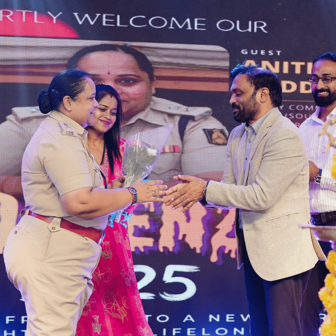 We were honoured to have Smt. Anitha B. Haddannavar, Deputy Commissioner of Police – South West, Bangalore City, as our Chief Guest. Her powerful presence and inspiring words motivated the students to dream big, stay disciplined, and step forward with confidence. Her message on leadership, responsibility, and growth added great value to the event, making COMIENZO 2K25 not just a celebration but a meaningful moment for every student present.